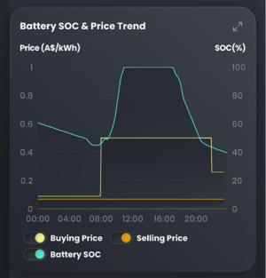 Battery State of Charge & Price Trend: This graph is multi-purpose. Here's a breakdown of each chart element: