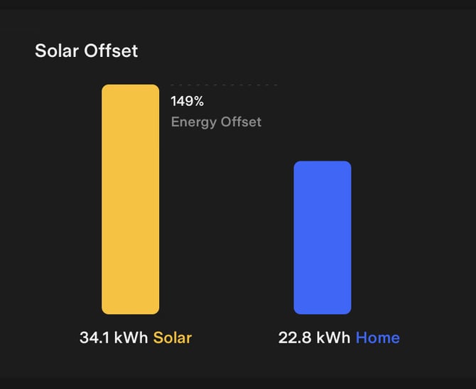 Solar Offset: Display of your solar production against your home consumption. The energy offset value can be higher than 100% as this indicates that your system is producing more during a selected time period than what you are consuming. |